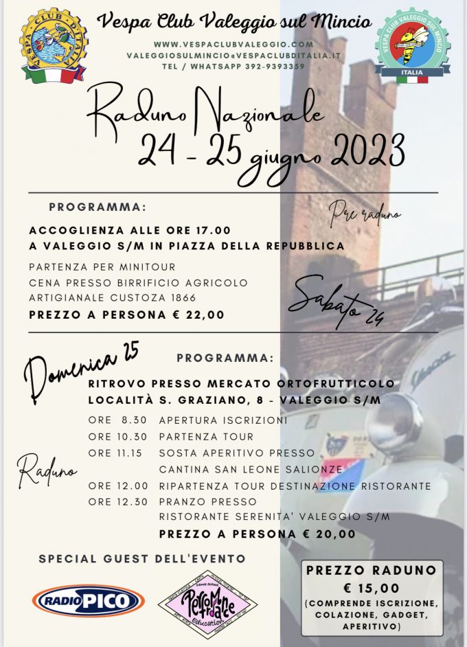 Domenica 25/06 si tiene il Raduno Nazionale a Valeggio sul Mincio, partenza da Verona alle ore 8.30.