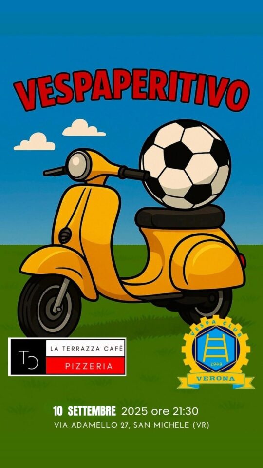 Ecco la serata giusta per un giretto in città e la sosta aperitivo tra amici Vespisti! Mercoledì 10/09 Vespaperitivo a La Terrazza Cafè – Bar via Adamello 27, Verona, con il risotto […]