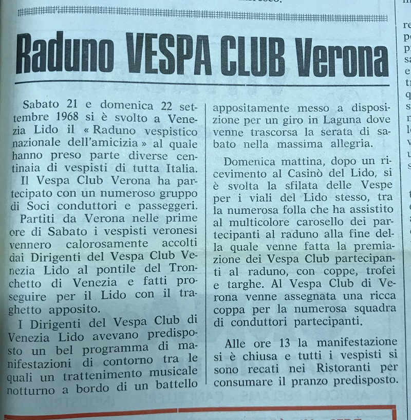 Cosa dicono del Vespa Club Verona su giornali, riviste e tv!